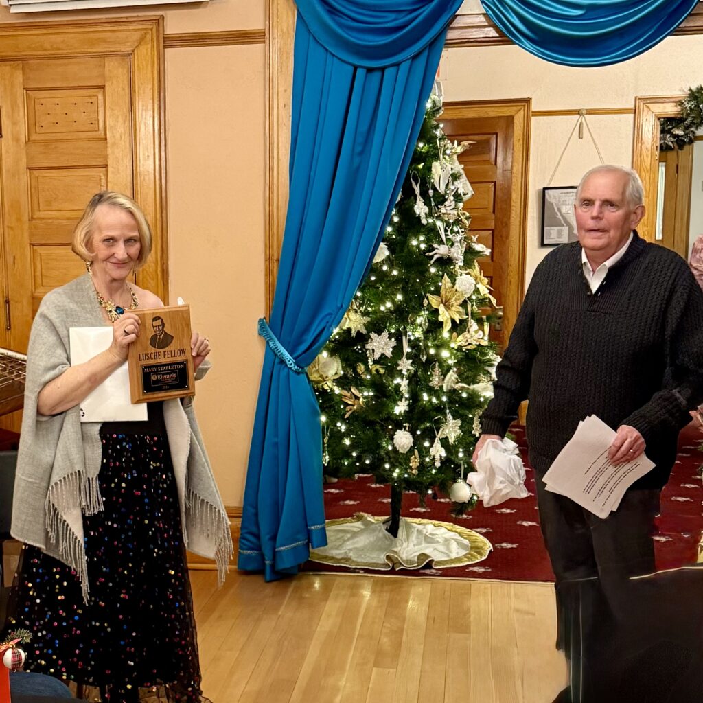 Fred presents Mary with the Lusche Fellow award, which is given in recognition of exceptional service.